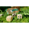 Le jeu se compose de deux dés Maro, qui serviront de cible… et de multiplicateur de score. A la fin de chaque manche, en effet, le dé le plus proche de chaque dé Maro marquera son nombre de points multiplié par la valeur du dé Maro. Chaque équipe dispose également de deux dés de sa couleur.