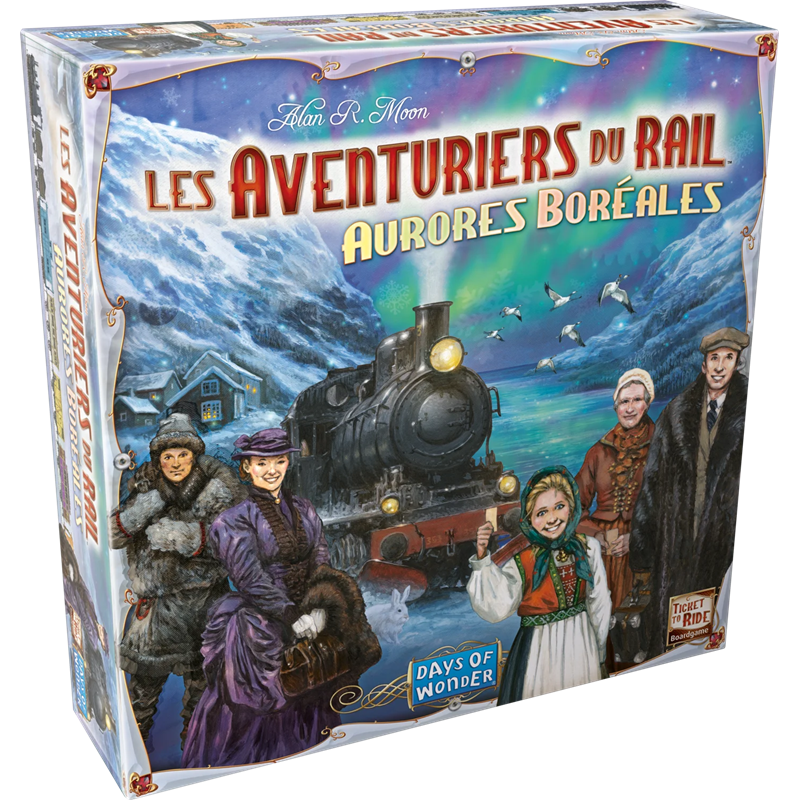 Les Aventuriers du Rail™ – Aurores Boréales est une nouvelle version du célèbre jeu d’aventures ferroviaires. Les joueurs utilisent leurs cartes wagon pour prendre possession de voies ferrées ou embarquer à bord d’un ferry, reliant peu à peu les villes qui figurent sur leurs tickets. Ils doivent aussi garder un œil sur les 4 cartes bonus communes sélectionnées au hasard et qui peuvent rapporter de précieux points en fin de partie.