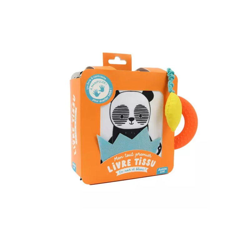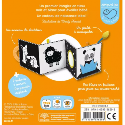 Un livre en tissu à contrastes pour un éveil visuel dès le plus jeune âge. En format accordéon, ce livre en tissu propose différents éléments de manipulation pour un éveil tactile et moteur : un anneau de dentition, un grelot, des flaps en feutrine, des rubans à attraper et un incontournable : le miroir. Un cadeau de naissance idéal !
