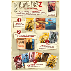 Happy DayZ c’est un jeu dans lequel vous incarnez des Communautés de Survivants tentant de déjouer les attaques de Zombies ! Jouez vos cartes d’un côté ou de l’autre du plateau : côté « + », c’est la carte la plus haute qui remporte le pli, côté « -« , c’est la carte la plus basse. Remportez les plis pour déclencher les pouvoirs des Factions, évitez les Zombies et renvoyez-les dans les autres Communautés pour limiter les pertes. Jouez les bonnes cartes au bon moment et bon endroit pour survivre à la Horde ! »